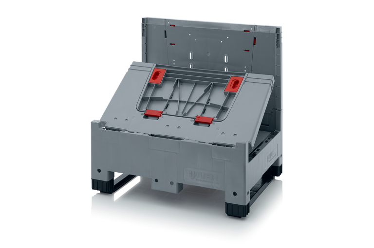 Demi-caisse palette europe pliable. Vidage en moins de 2 minutes par l’équipe magasin.